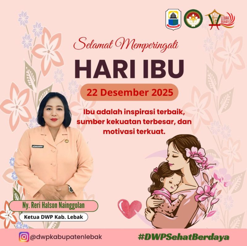 DAILYHITS– Dharma Wanita Persatuan atau DWP Kabupaten Lebak, Provinsi Banten mengucapkan Selamat Hari Ibu, 22 Desember 2025. Ibu adalah inspirasi terbaik, sumber kekuatan terbesar dan motivasi terkuat. *
