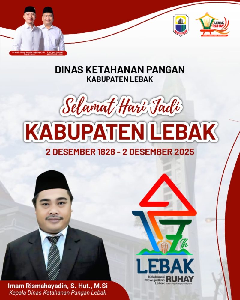 DAILYHITS- Dinas Ketahanan Pangan Kabupaten Lebak mengucapkan Selamat Hari Jadi Kabupaten Lebak ke – 197.