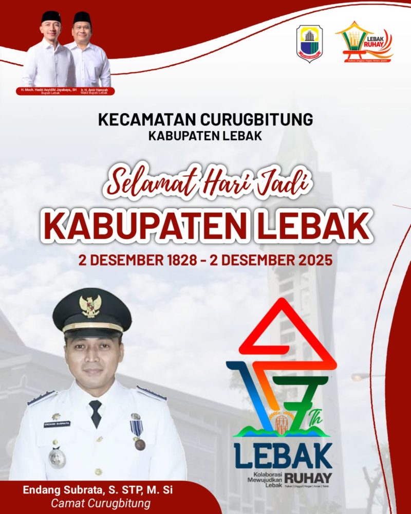 DAILYHITS- Pemerintah Kecamatan Curugbitung, Kabupaten Lebak mengucapkan Selamat Hari Jadi Kabupaten Lebak ke – 197.