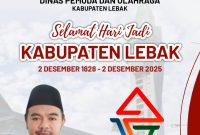 DAILYHITS – Seluruh jajaran Dinas Pendidikan Kabupaten Lebak, Provinsi Banten mengucapkan Selamat Hari Jadi Kabupaten Lebak ke 197. “Kolaborasi Mewujudkan Lebak Rukun Unggul Hegar…